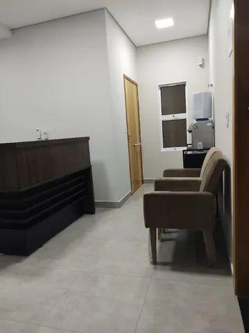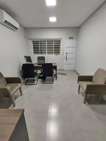 Sobrado Comercial: Parte térrea: acesso com corrimão, 3 salas comerciais, sendo 1 com banheiro privativo, recepção, copa, 1 banheiro PNE (acessibilidade), plataforma cabinada (elevador), copa, área de serviço, espaço de lazer com churrasqueira, todas as salas e recepção com ar-condicionado novo instalado. Parte superior: acesso por escada ou plataforma cabinada (elevador), 4 salas comerciais, sendo 1 com banheiro privativo, 1 banheiro PNE (acessibilidade), sem ar-condicionado instalado, infraestrutura pronta para instalação do ar em todas as salas.