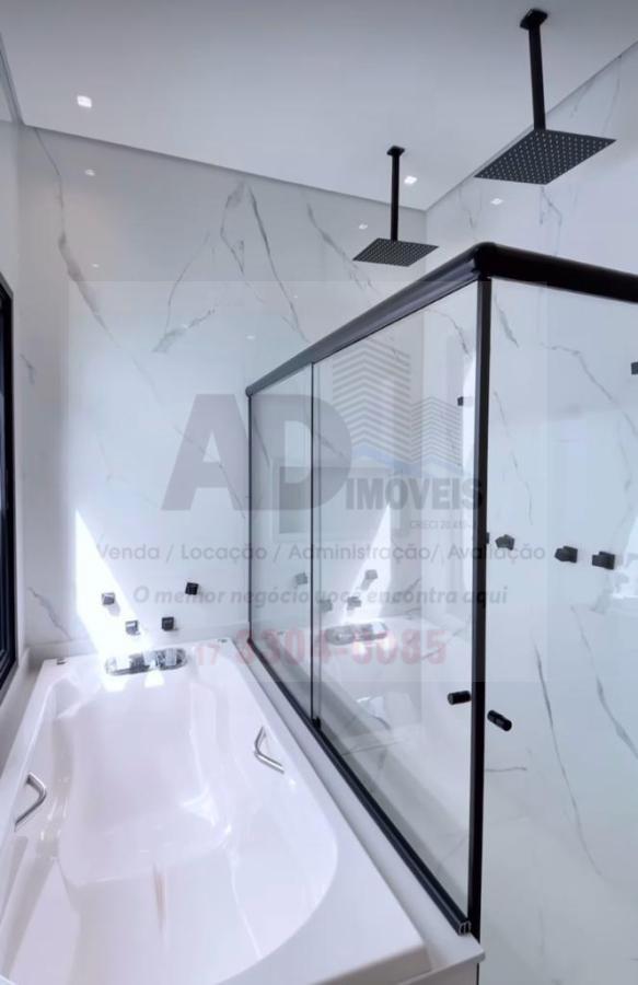 Com 3 dormitórios, sendo 3 suítes, possui 5 banheiros, 4 vagas de garagem sendo 2 cobertas,1 sala, balcão refrigerado, piscina aquecida, cozinha com microondas, forno elétrico, cooktop, coifa, escritório com cofre embutido, telhado armação de aço galvonizado, excelente acabamento e material de primeira linha.