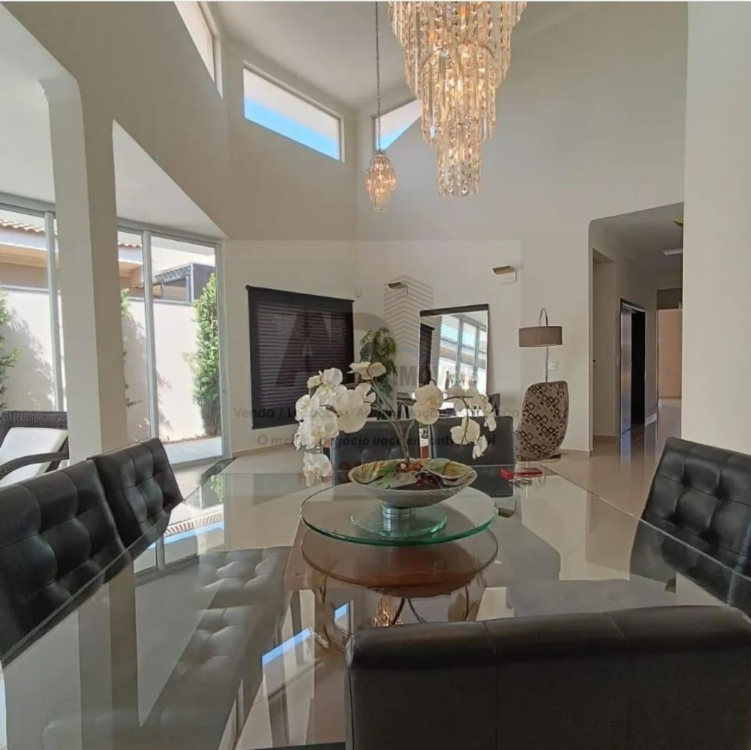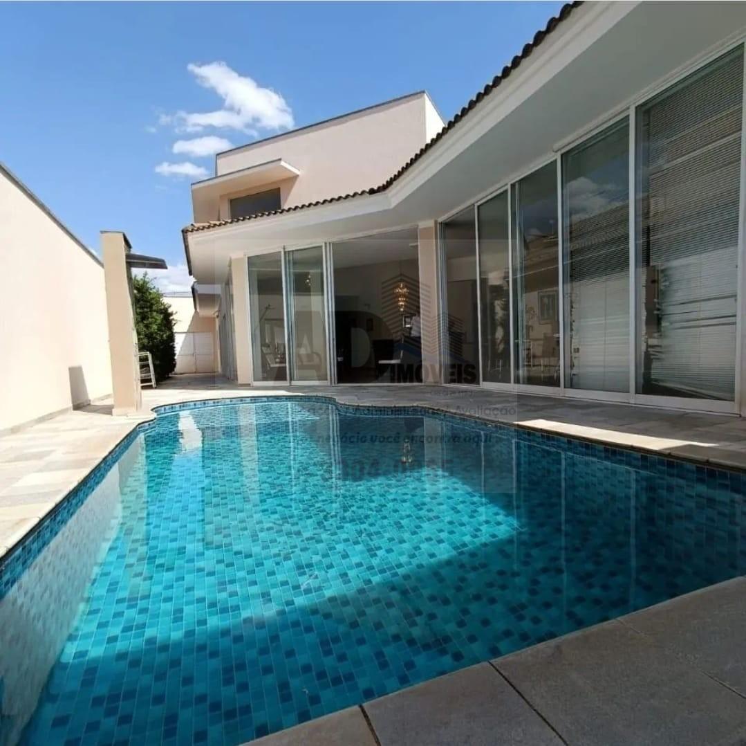 Com 3 dormitórios, sendo 3 suítes, possui 5 banheiros, 4 vagas de garagem, sendo 02 cobertas e 02 descobertas, sala com 2 ambientes pé direito alto,  cozinha com armários planejados, piscina aquecida, escritório, sala de TV,